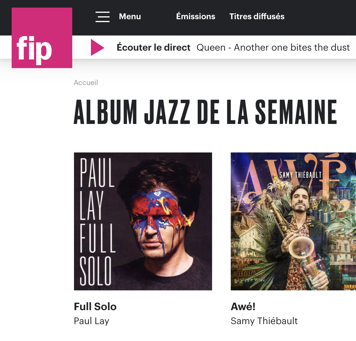 Full Solo est Album Jazz de la Semaine sur Fip
