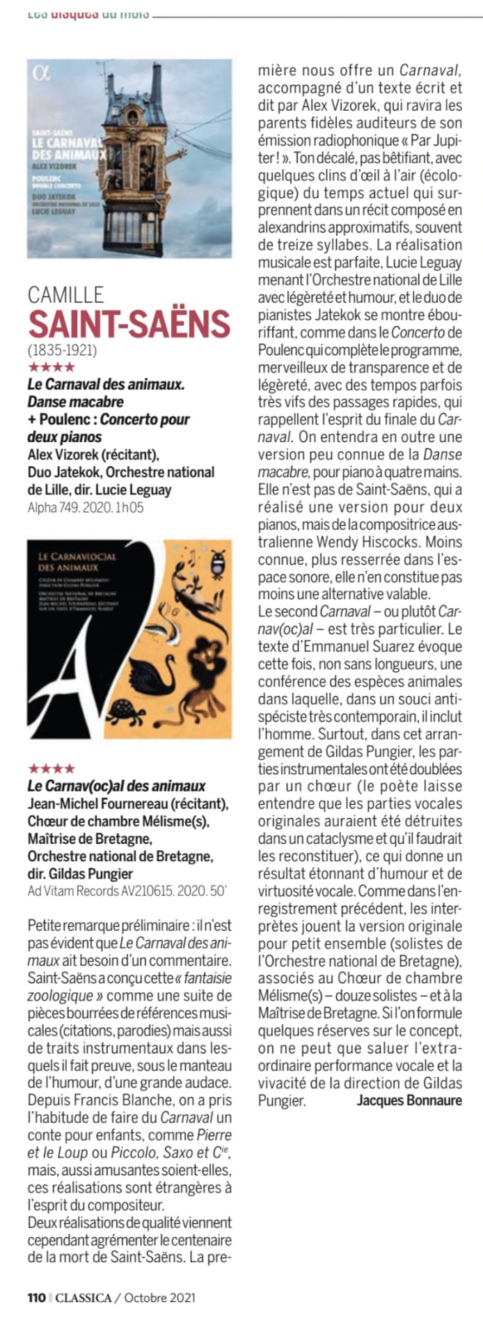 Le Carnaval des Animaux dans Classica
