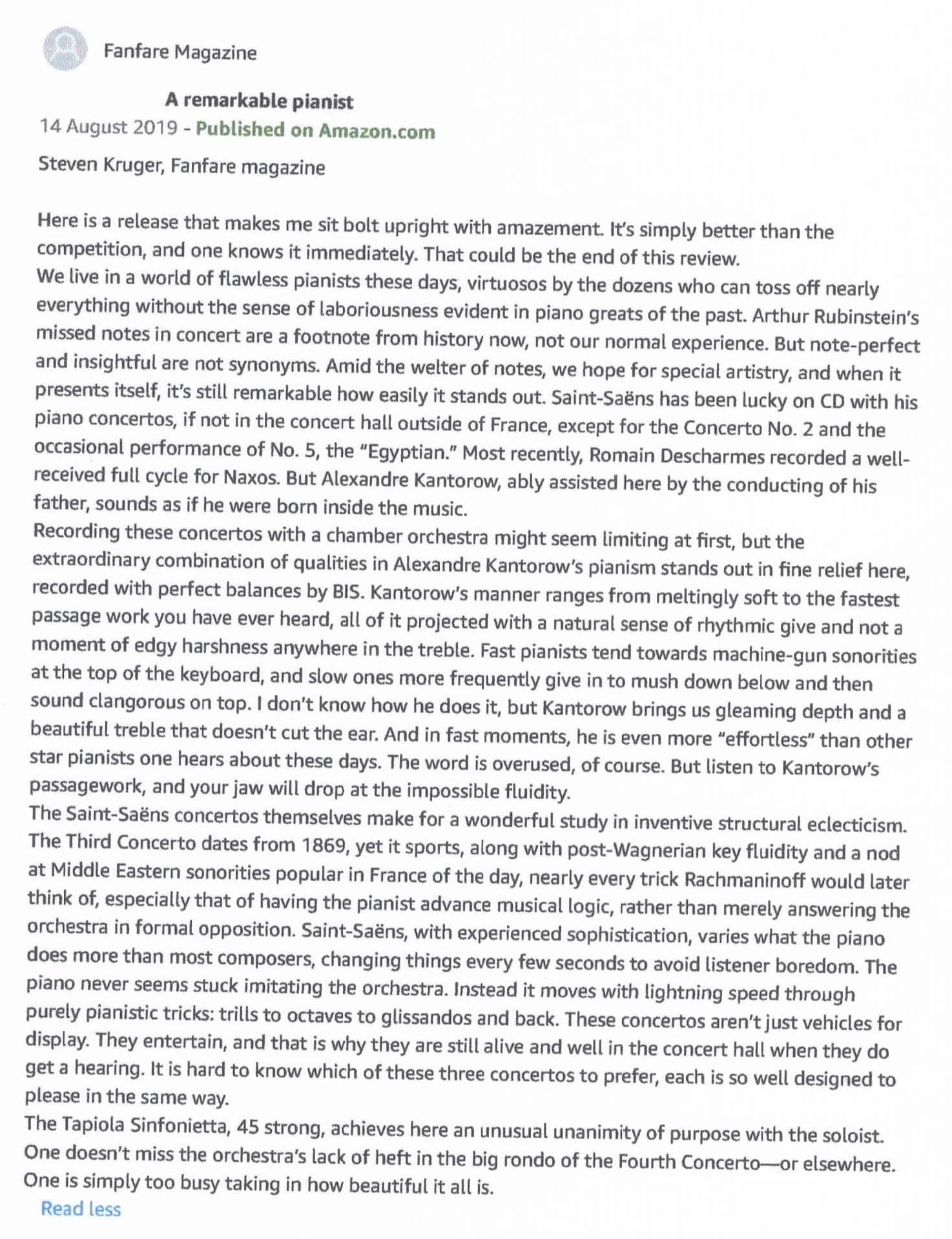 Critique du disque Saint-Saëns – Alexandre Kantorow