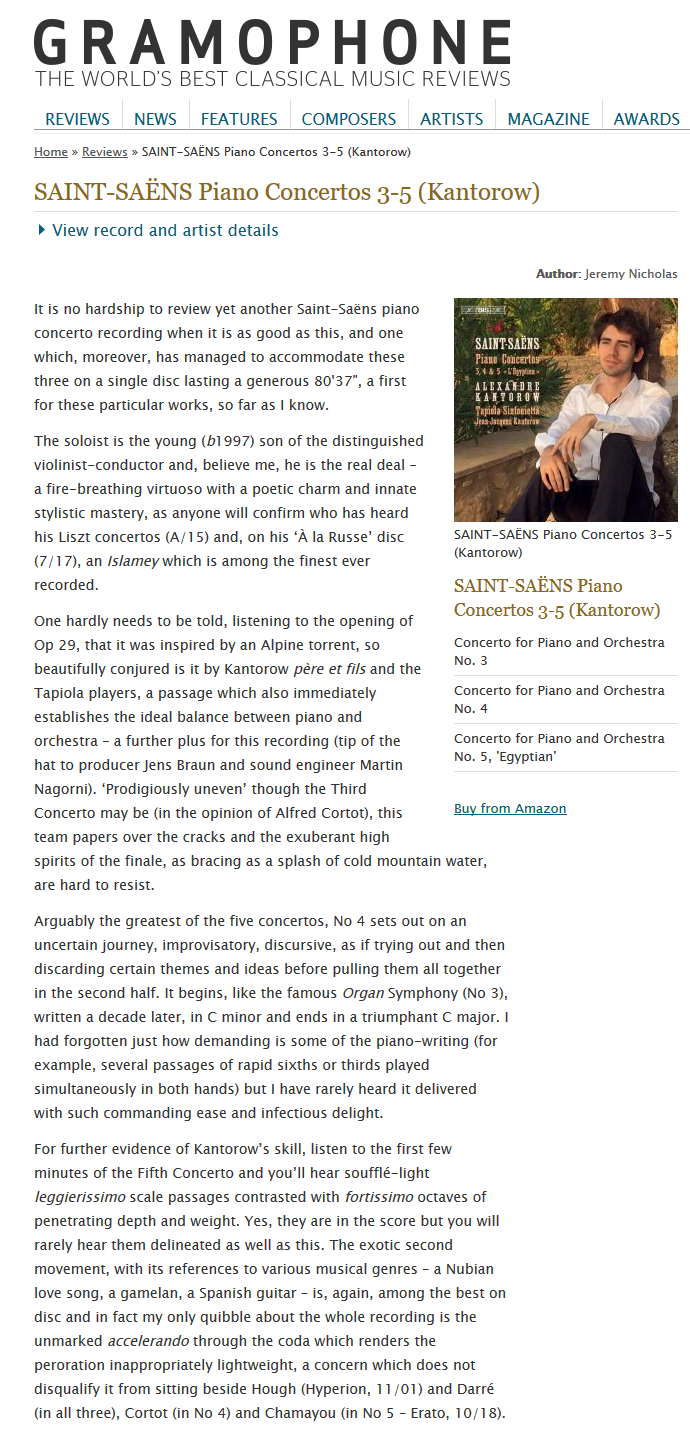 Review CD Saint-Saens – Alexandre Kantorow – Gramophone